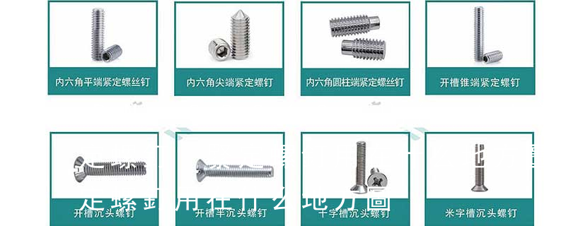 使用時先把螺釘旋入待固定零件的內(nèi)螺紋孔中,再把螺釘?shù)哪┒司o壓在另一個零件的表面上,使這兩個零件的相對位置固定下來。開槽和內(nèi)六角緊定螺釘適用于不允許螺釘外露的場合,方頭緊定螺釘適用于允許釘頭外露的場合。