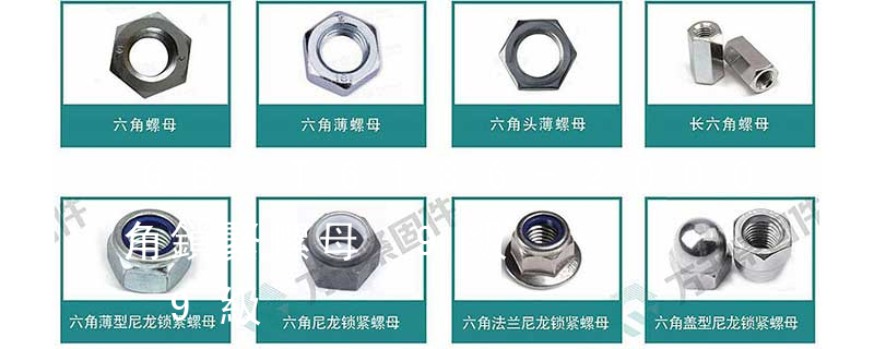 1型六角螺母:標準為GB/T 6170,螺紋規格為M1.6~M64、性能等級為6、8、10、A2-50、A2-70、A4-50、A4-70、CU2、CU3和AL4級、產品等級為A和B級的1型六角螺母。A級用于D≤16mm;B級用于D>16mm的螺母。2型六角螺 · 1型全金屬六角鎖緊螺母GB /T 6184-2000 · 2型全金屬六角鎖緊螺母GB /T 6185.1-2000 · 2型全金屬六角鎖緊螺母細牙GB /T 6185.2-2000 · 2型全金屬六角鎖緊螺母9級GB /T 6186-2000 · 全金屬六角法蘭面